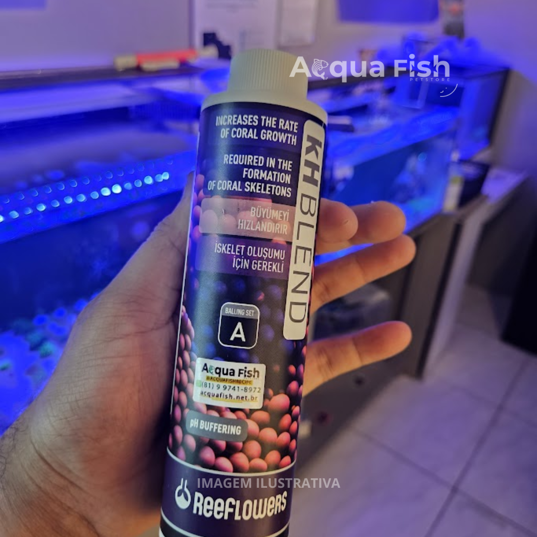 ReeFlowers kH Blend,é uma solução altamente eficiente no aumento da alcalinidade e dureza de carbonatos (kH)que facilita o desenvolvimento estrutural de corais, tridacnas e demais invertebrados aquáticos..