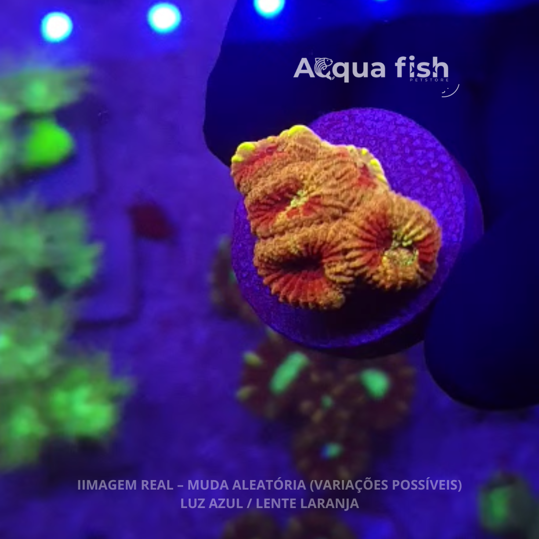 Favites Colors é um coral LPS do gênero Favites, famoso por suas cores vibrantes e padrões únicos em cada colônia. Resistente e fácil de cuidar, é ideal para aquários de recife com iluminação moderada a forte e fluxo de água moderado. Cada peça é única, podendo variar em tons e padrões, tornando seu aquário ainda mais especial.