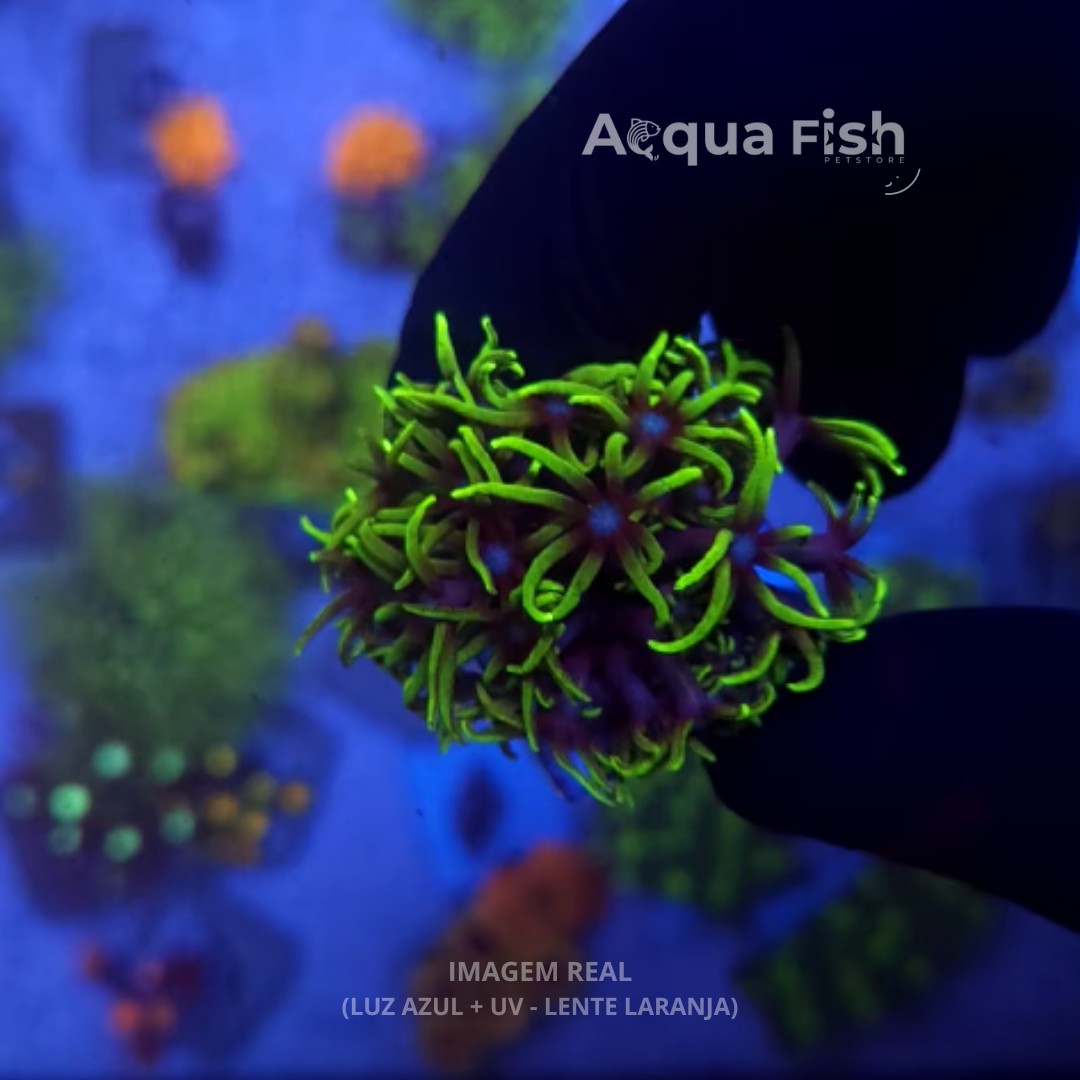 As imagens apresentadas são ilustrativas e têm como objetivo mostrar o potencial visual do coral ou animal quando bem desenvolvido e aclimatado. As cores e o tamanho podem variar conforme iluminação, crescimento e maturidade da colônia.