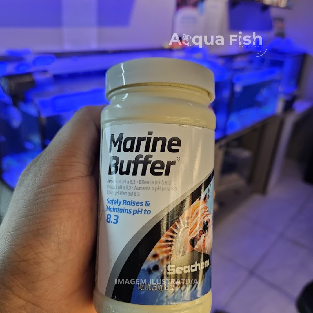 Marine Buffer aumenta o pH para 8,3, mas não aumenta o pH acima de 8,3, mesmo com uma superdosagem. É uma mistura de produtos, e não apenas de bicarbonato de sódio e carbonato, vulgarmente vendido como um substituto. Tais produtos podem elevar o pH a níveis perigosos se não forem usados corretamente. Marine Buffer contém sódio, magnésio, cálcio, estrôncio e sais de potássio como de carbonato, bicarbonato, cloreto, sulfato e borato.