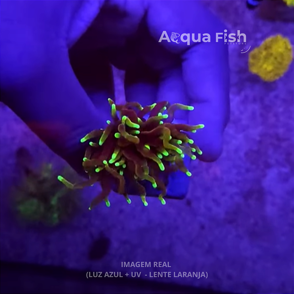 O coral Torch Dragon Soul é uma espécie deslumbrante e vibrante, muito apreciada por aquaristas de recifes de corais. Ele é conhecido por suas longas tentáculos que se assemelham a tochas flamejantes, daí o nome "Torch". As cores podem variar, mas geralmente apresentam uma combinação hipnotizante de tons metálicos, como dourado, verde, azul e roxo, muitas vezes com pontas brilhantes que capturam a luz de forma espetacular.
