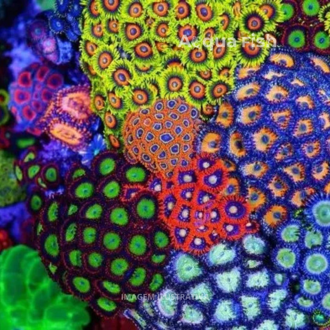 O coral Zoanthus formam colônias com centenas, milhares de pólipos agrupados, formando uma beleza espetacular. Vão se espalhando cobrindo a rocha onde foi colocado. Normalmente se coloca numa rocha baixa, perto do substrato, por não necessitarem de luz intensa e até mesmo pelo seu formato, deixando as rochas altas para corais que ocupam mais espaços verticais e mais exigentes à luz.