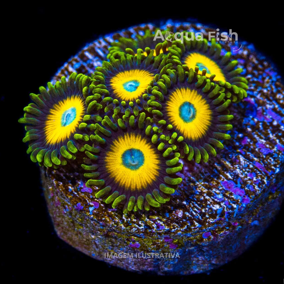 Zoanthus e Palythoas são corais moles (Soft Corals) extremamente populares no aquarismo marinho, conhecidos por sua variedade impressionante de cores, fácil manutenção e crescimento acelerado. Ideais tanto para iniciantes quanto para aquaristas experientes, formam colônias densas de pequenos pólipos que rapidamente cobrem as rochas vivas, criando um visual vibrante e dinâmico no aquário.
